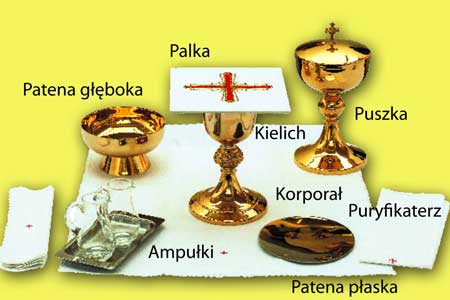 Kielich (łac. calix) i patena (łac. patane - misa) należą do najgodniejszych naczyń liturgicznych, w nich bowiem spoczywają postacie eucharystyczne.