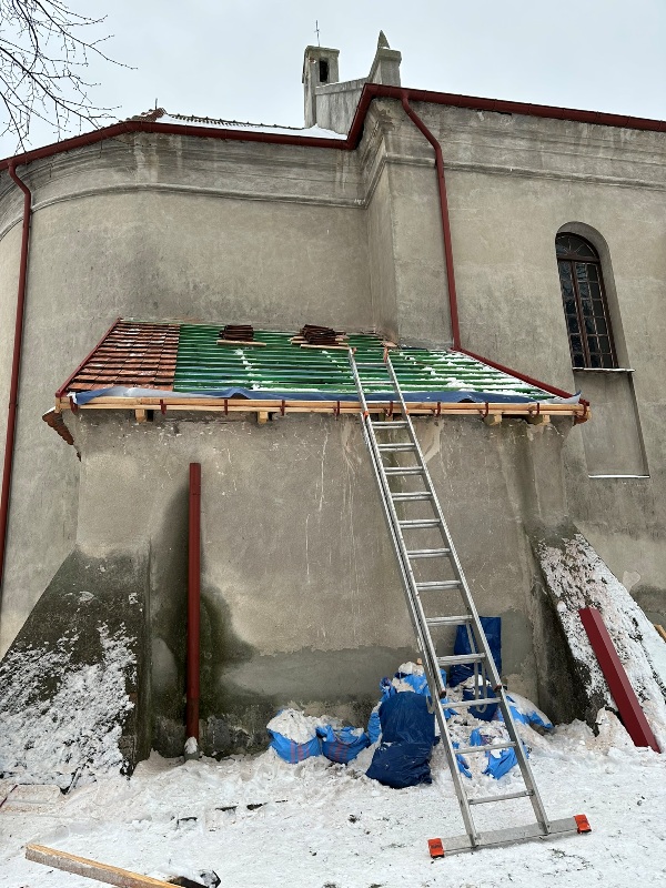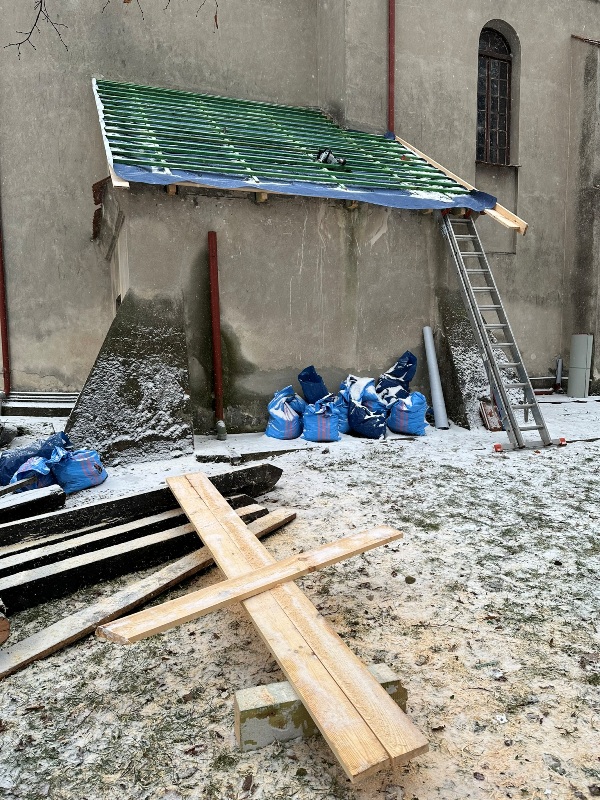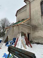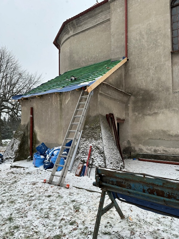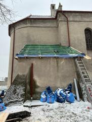 Wymiana dachu nad zakrystią w kościółku - listopad 2023